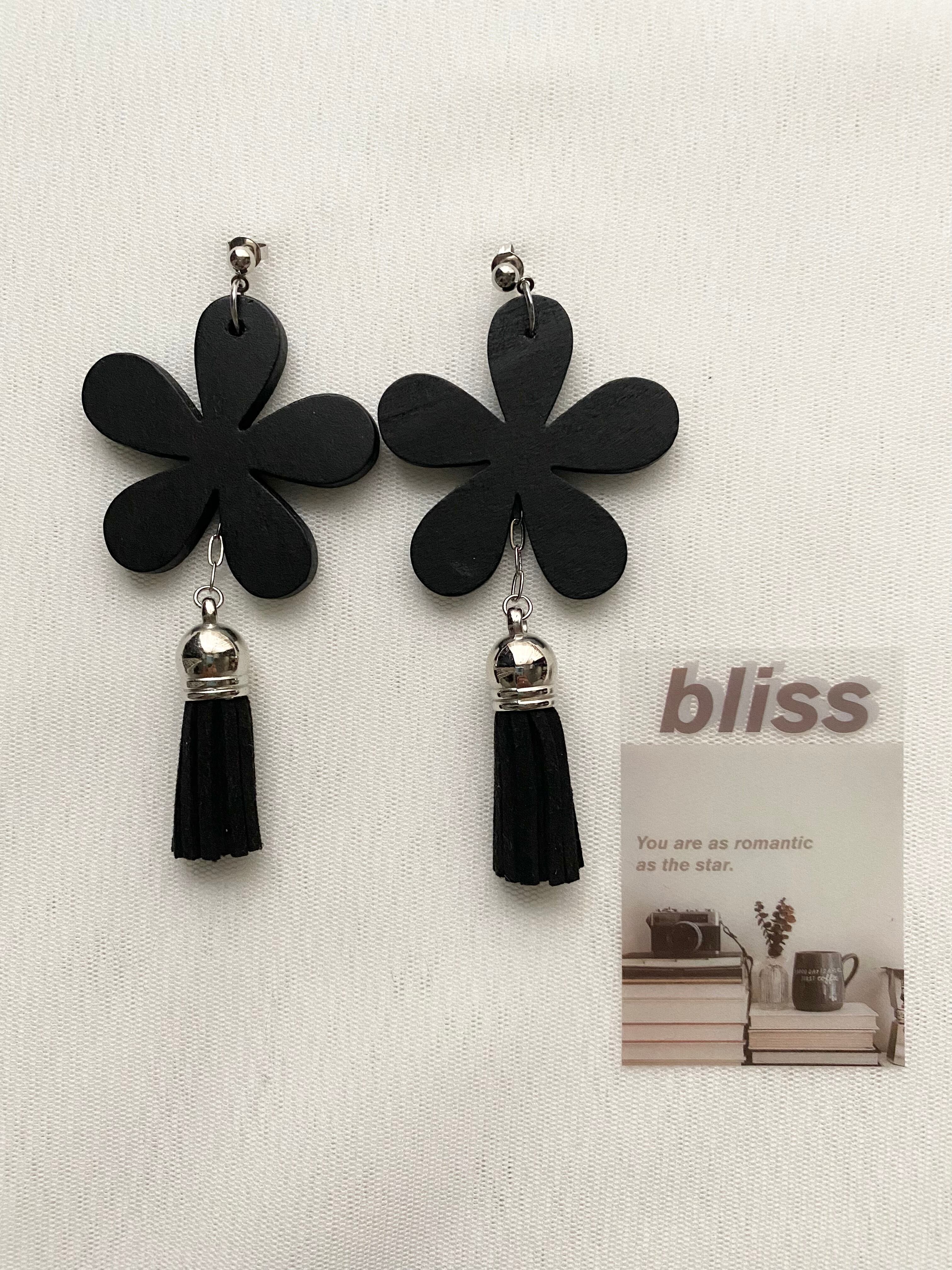 ウッドフラワー×フリンジ ピアス